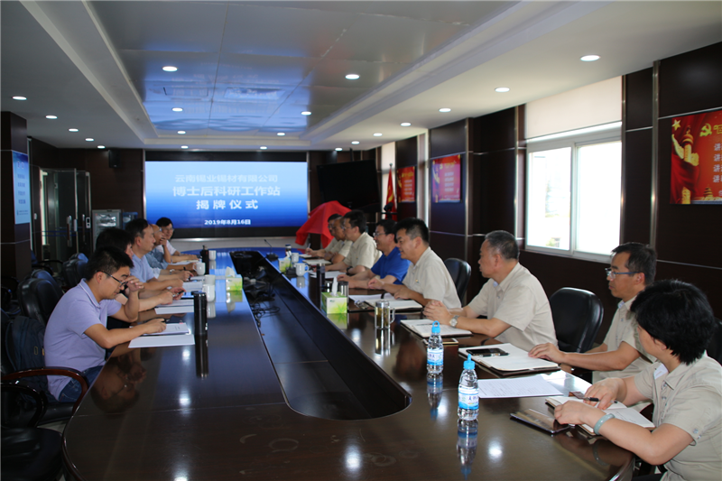 8月16日,云南锡业锡材有限公司博士后科研工作站揭牌仪式在锡材公司隆重举行。控股公司副总经理宋兴诚,以及锡材公司邀请的进站博士开题答辩评审专家昆明理工大学材料学院院长邱建备等为工作站揭牌。