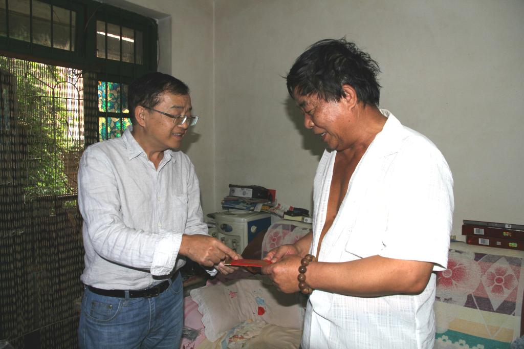 锡业股份党委委员、工会主席李林走访慰问老厂分公司困难职工李生保。(刘亚杰/摄)
