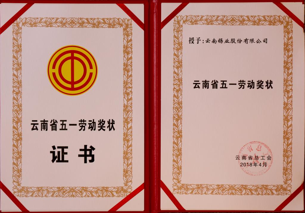 4月26日下午,云南省召开庆祝“五一”国际劳动节暨表彰大会,隆重表彰劳模先进,云南锡业股份有限公司获得“云南省五一劳动奖状”荣誉称号。