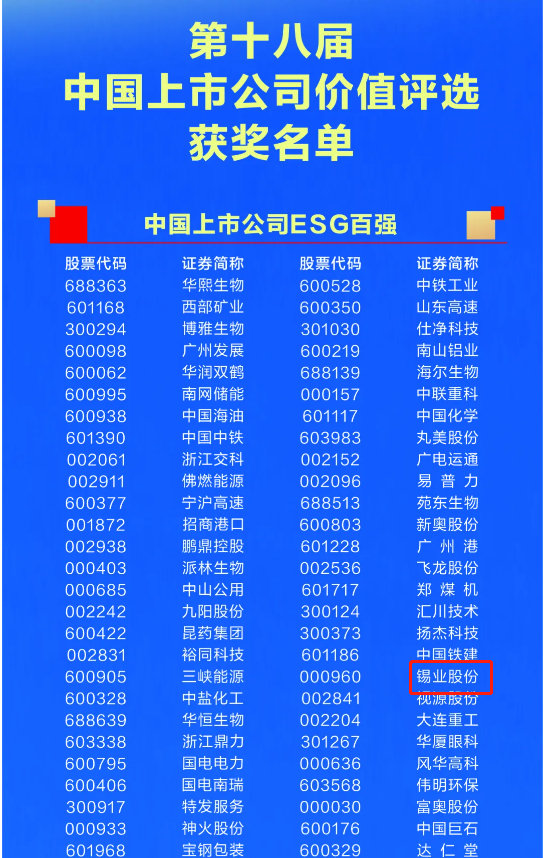 同日,证券时报主办的“第十八届中国上市公司价值论坛暨2024新质生产力巡礼长三角行”在江苏昆山举办,会议在全面考量上市公司经营、财务、创新、市场影响以及社会责任等各方面表现的基础上评选出了“2024中国上市公司ESG百强”榜单,锡业股份成功入选。此次荣获2023年度金信披奖及“2024中国上市公司ESG百强”称号是公司高质量发展、全方位综合实力不断增强的体现,更是各界评委对公司规范运作、信息披露、环境保护、社会责任履行及公司治理等工作的充分肯定。