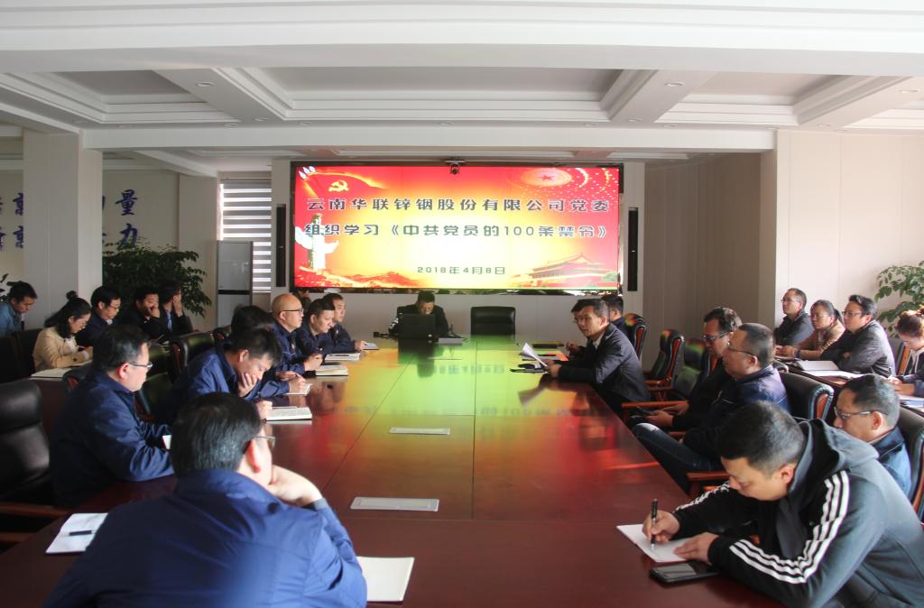 4月8日,华联锌铟公司党委召开党委扩大会专题学习《中共党员的100条禁令》,公司领导班子成员、各车间部门负责人参加学习。
